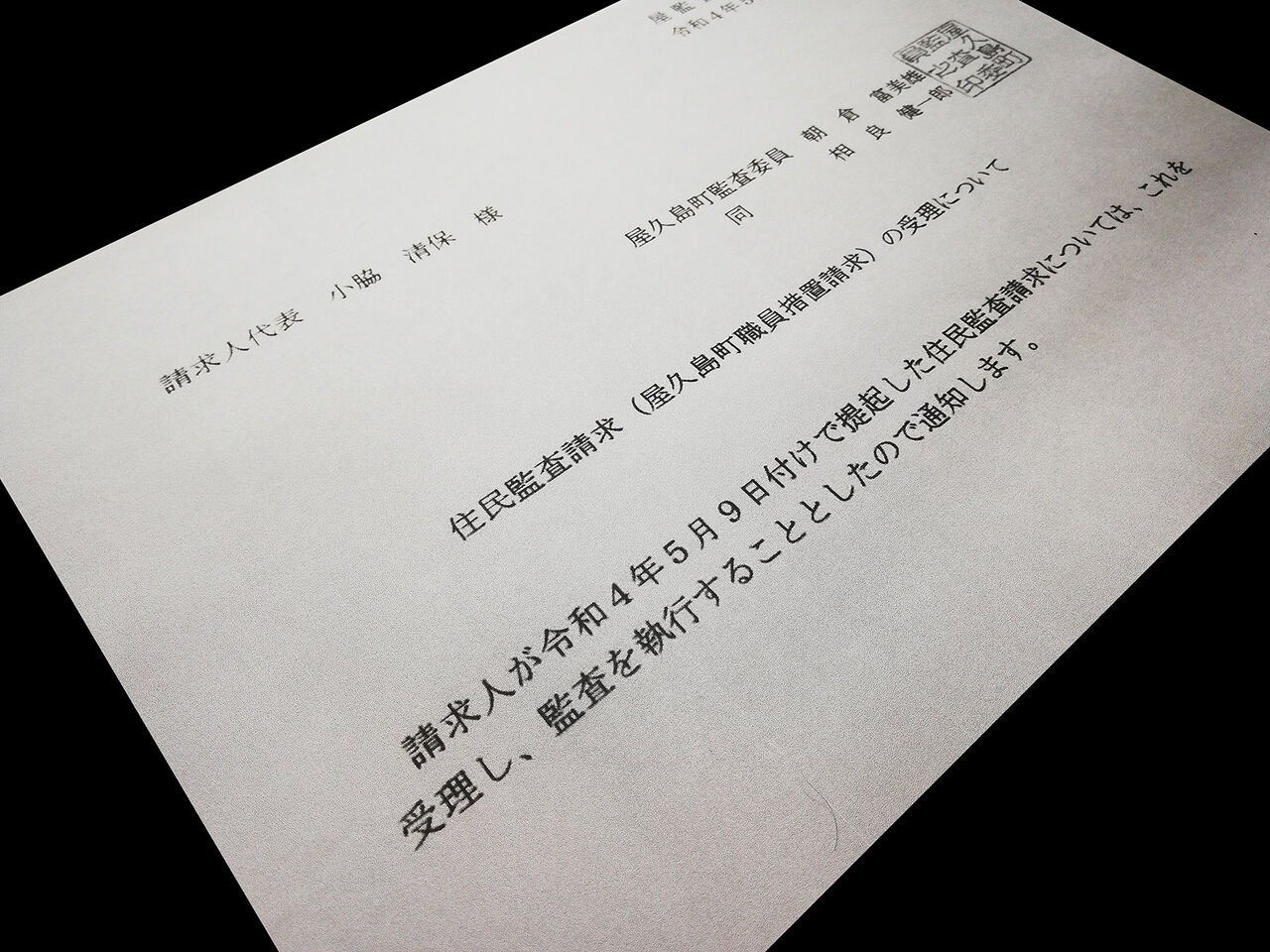 屋久島町では様々な不祥事が続いているが、これは行政による責任感の欠如が招いた結果だといえる。住民から委託を受けて、住民のために行う仕事なのに、自分たちの内輪だけで解決すればいいという体質が町にあるのではないか。また、町政を監視するはずの町議会もまったく機能していない。