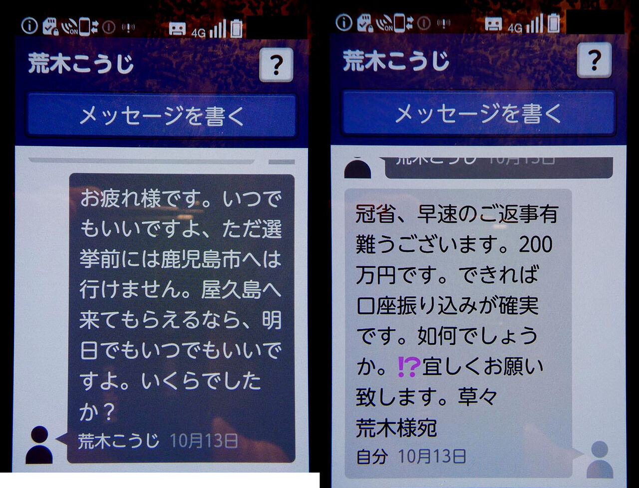 2019年末、屋久島町の荒木耕治町長にかけられた疑惑は、シルバー割引を使った出張旅費の着服だけではありませんでした。町の廃棄物処理事業への参入を目指す業者が、事業への入札資格を得るため、荒木町長に「200万円を渡した」と主張。しかし、業者は入札に参加することができず、「約束が果たされなかった」として、荒木町長に200万円を返還するように求めていたのです。