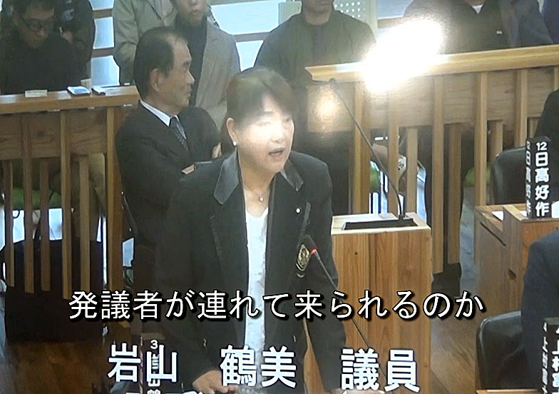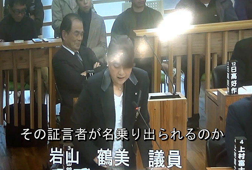 町議会で証言者の氏名公表を迫ったのは、岩山鶴美町議だ。