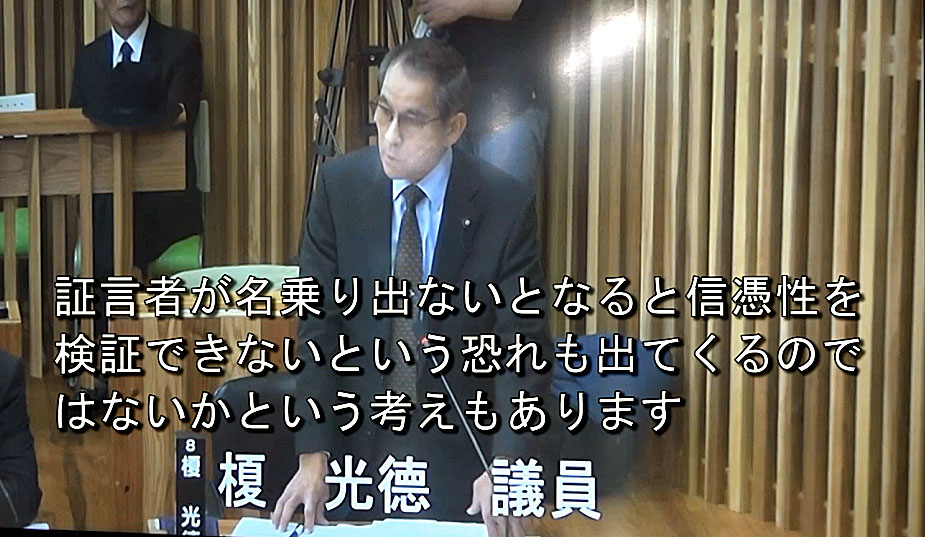 さらに、証言者に議会での証言を求めたのは、榎光徳町議である。