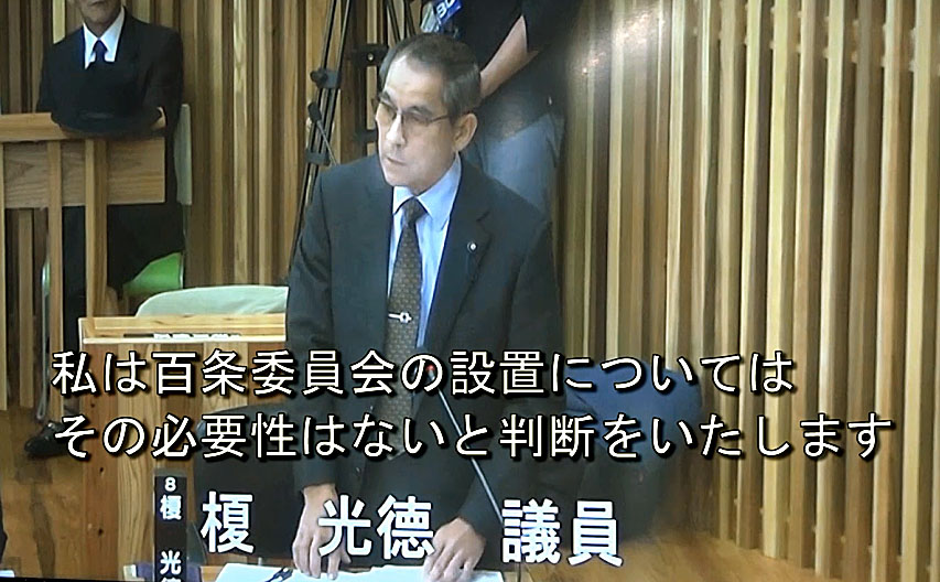 旅費不正問題などを調査する百条委員会の設置案に反対して討論する榎光徳町議(20191217日)