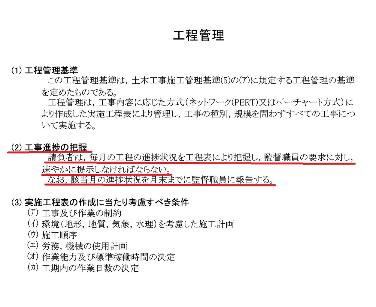 鹿児島県の「土木工事施工管理基準」では、工事の進捗状況を把握するため、月ごとの工事報告を義務づけている