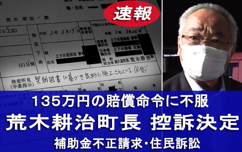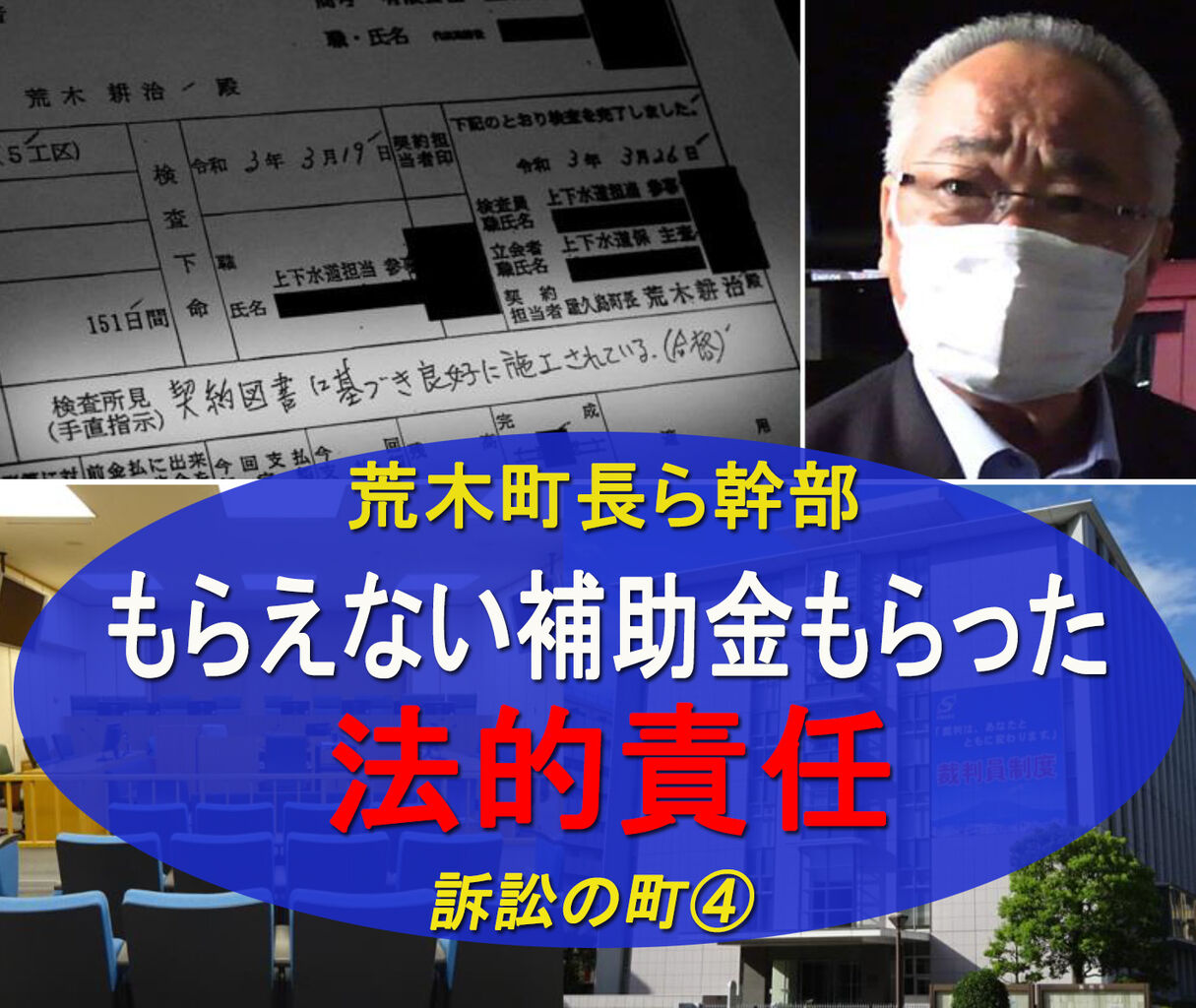 答弁で荒木町長は、水道整備工事の決算が町議会で不認定なった理由について、①一部工事における工期の大幅な逸脱、②工事が未完成の段階での完成検査の実施、③工事請負代金の前払い、④業者へのペナルティーと関係職員の処分がなされていないこと──の4点だと指摘。「申し開きができないことと重く受け止めている」と述べた。