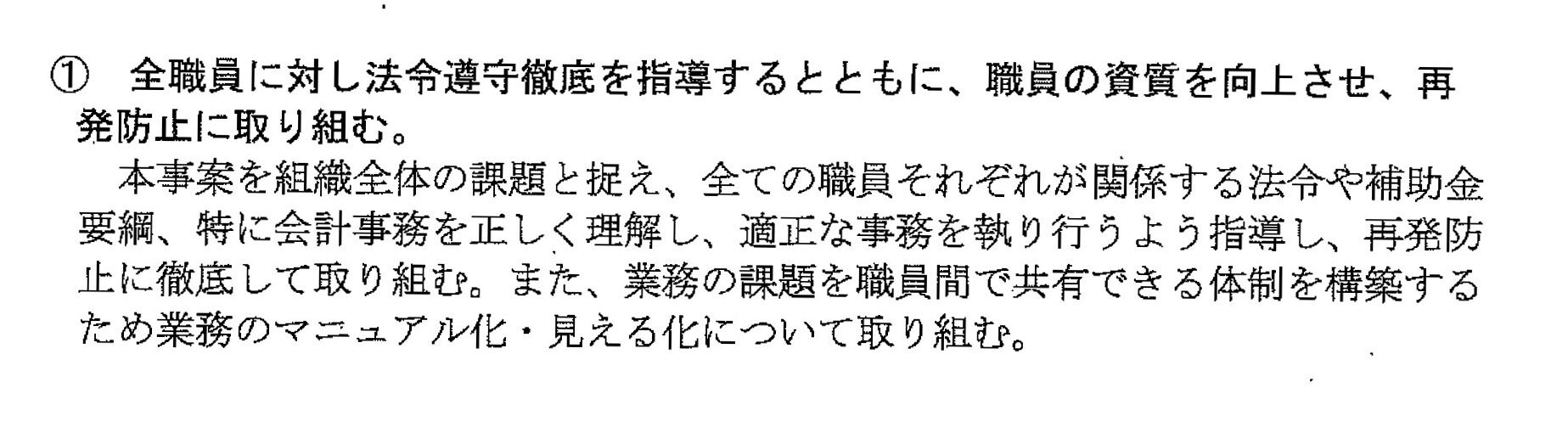 具体策なく「全職員に対し法令遵守徹底を指導」