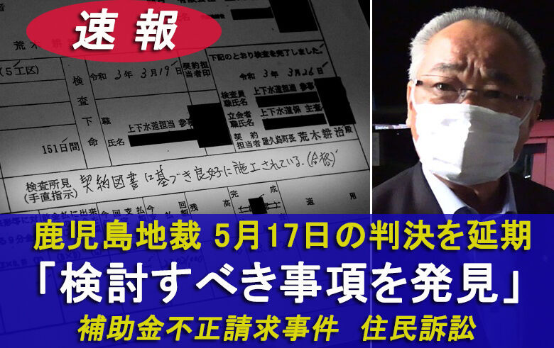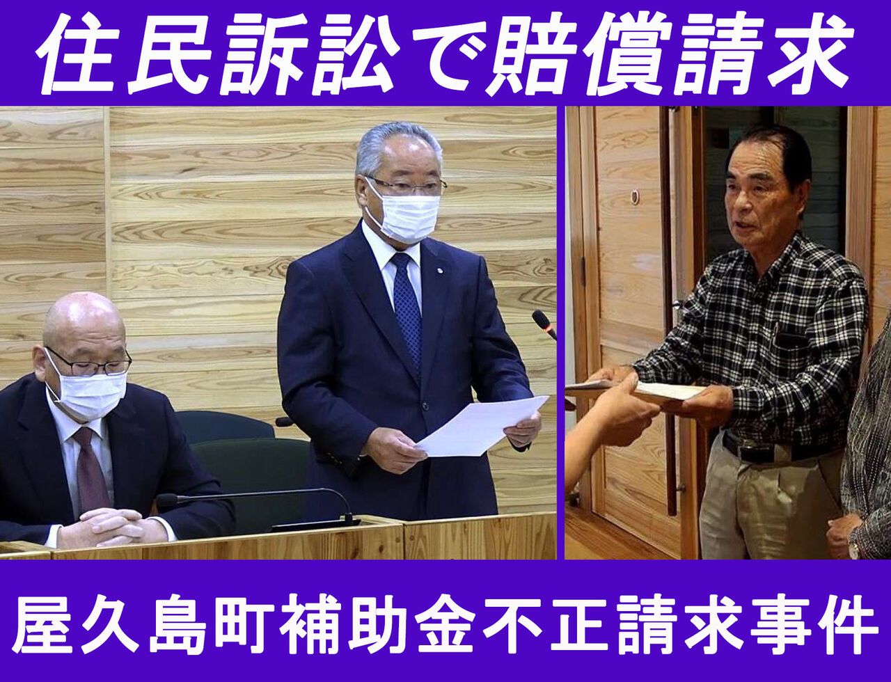 鹿児島県屋久島町の水道工事をめぐる補助金不正請求事件で、同町の住民が荒木耕治町長に対して提起する住民訴訟の訴状が8月2日、鹿児島地裁で受理された。提訴した元町議の小脇清保氏は、町が約1668万円を国に返還して町財政に損害を与えたとして、荒木町長に対し、町長や副町長、担当課長に全返還額の賠償請求をするよう求めている。