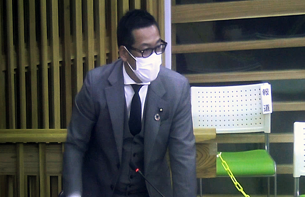 議会で発言する緒方健太町議