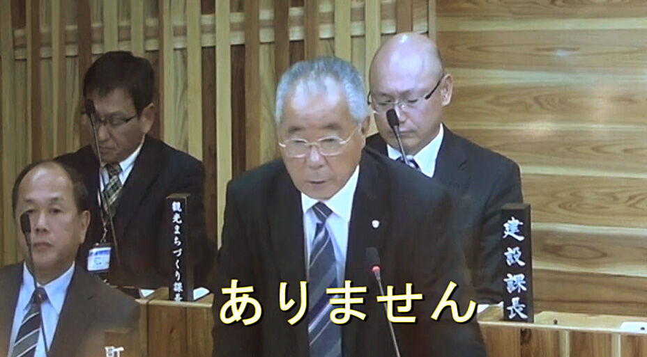 2019年末の町議会で、荒木耕治町長は町議から問われ続け、平然と3回、「ありません」と否定した。
