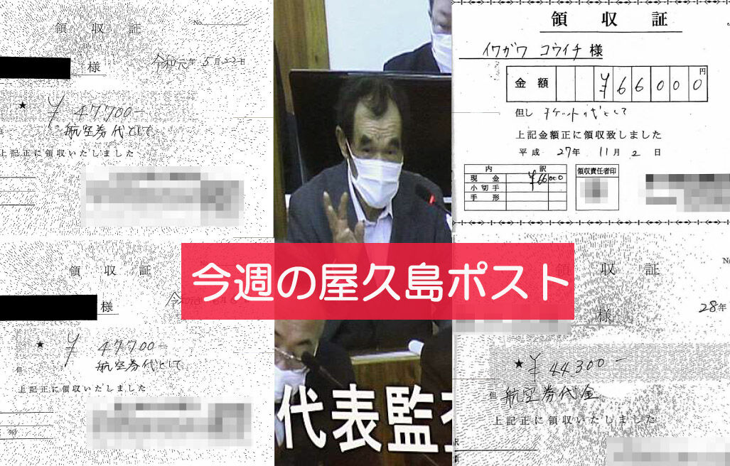 屋久島町の幹部らによる出張旅費不正問題をめぐり、虚偽領収書で不正精算をしていた日高好作町議と桑原幸夫元会計課長が詐欺容疑で刑事告発されたことが町関係者への取材でわかった。告発状は11月4日に鹿児島県警に受理されたという。