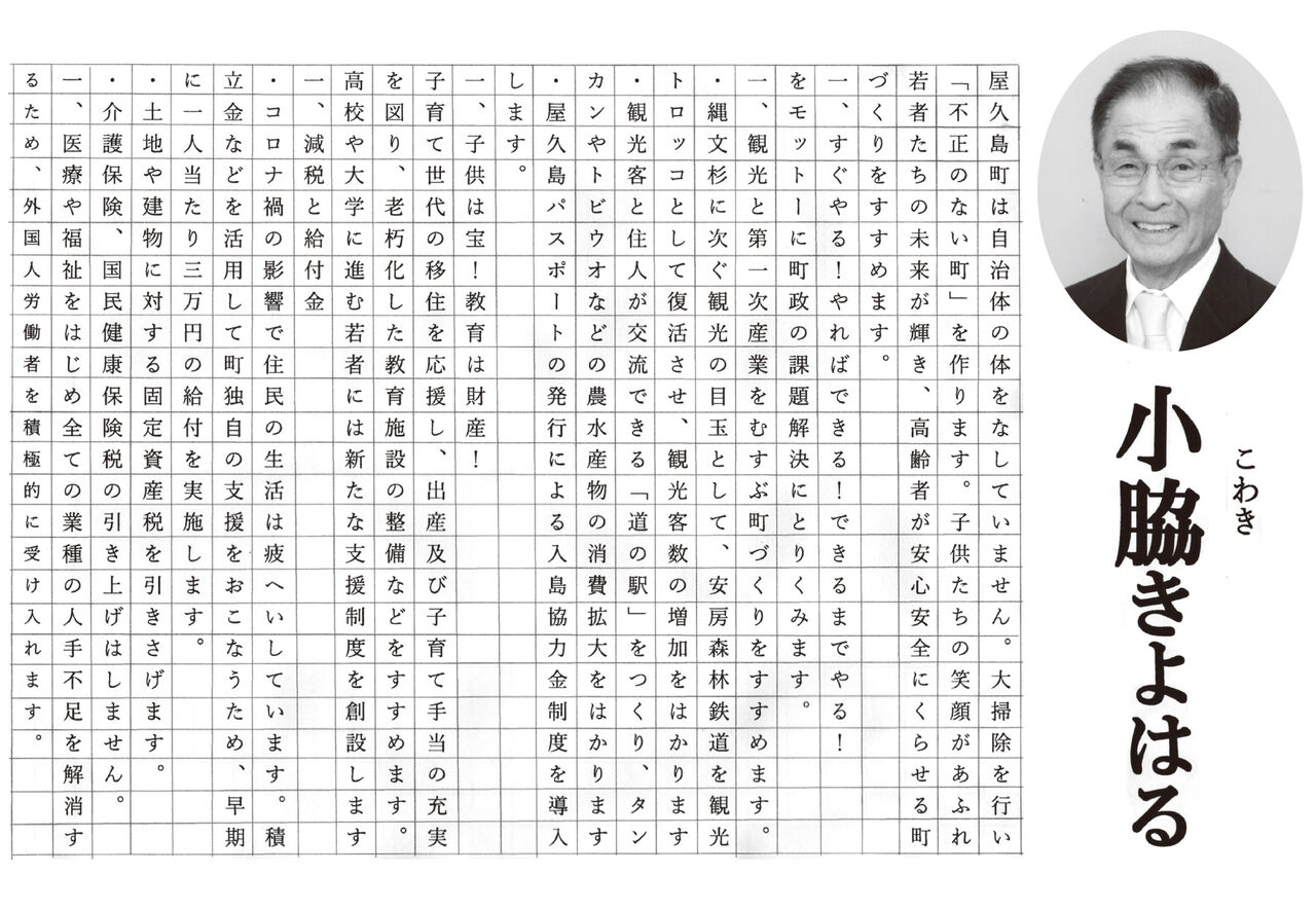 3選を果たしたのちに「町報やくしま」(2019年12月号)に掲載された荒木耕治町長のインタビュー記事の写真