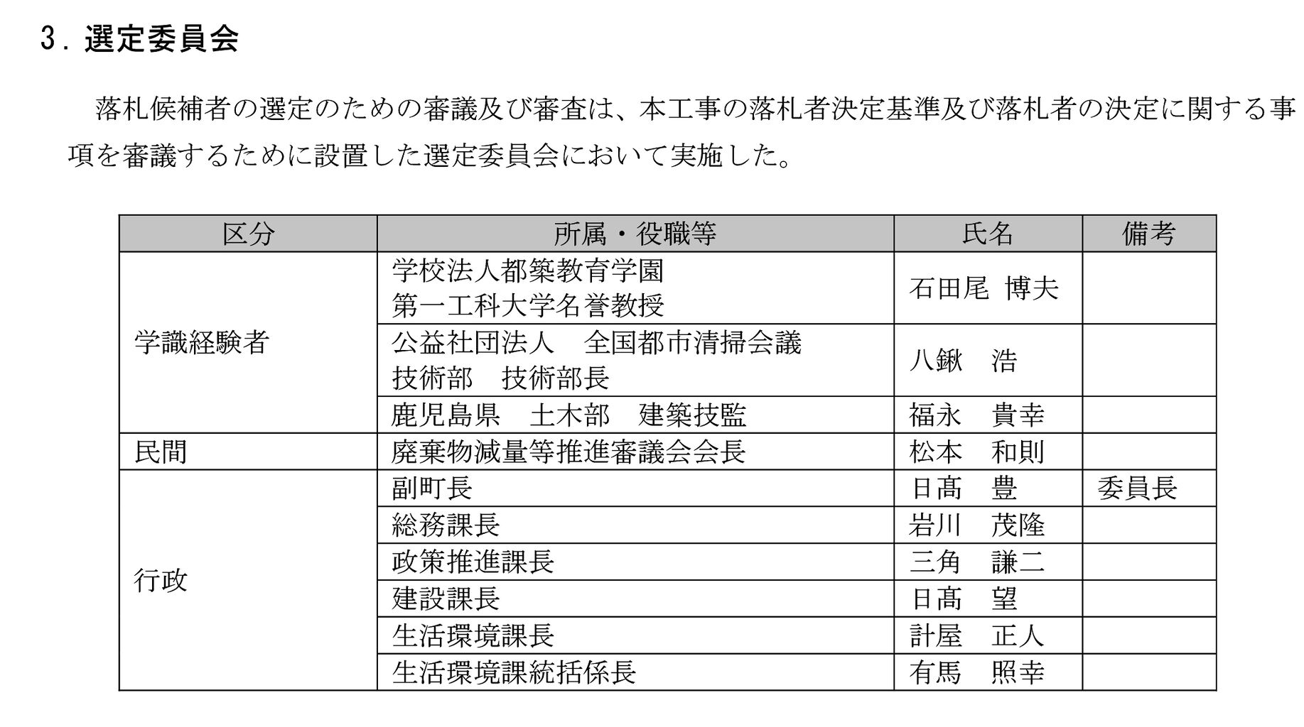 今回の入札は昨年11月24日に実施。テスコと川崎技研の2社が提案した建設計画や工事費(入札金額)などを踏まえ、学識経験者や民間、屋久島町役場の計10人でつくる「屋久島町ごみ処理施設整備事業者選定委員会」(委員長・日高豊副町長)が審査した。予定価格の24億6100万円は昨年5月に事前公表され、予定価格を超えて入札した場合は、「失格」となることが入札説明書に明記されていた。