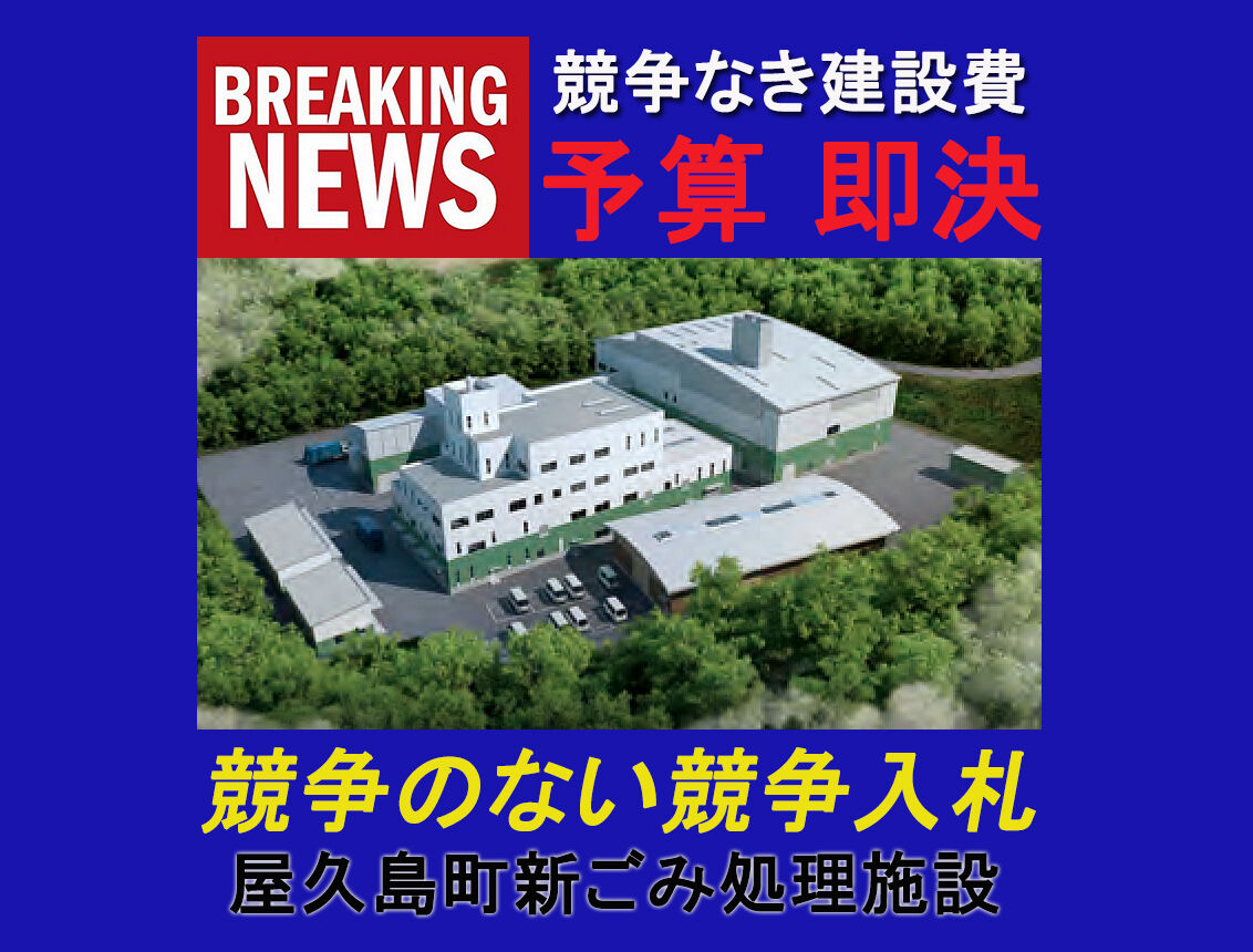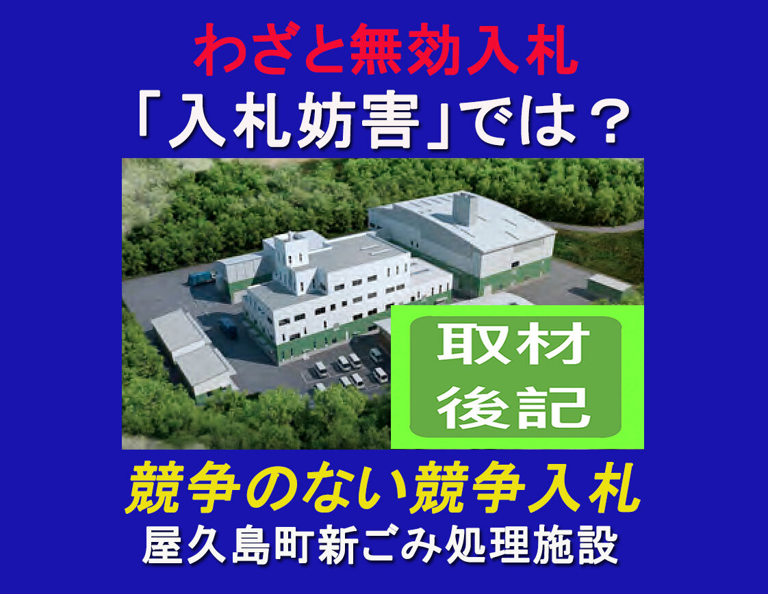 屋久島町の新ごみ処理施設の建設業者を決める一般競争入札で、落札する意思がない川崎技研(本社・福岡市)が入札への参加を辞退せず、事前公表された予定価格を約15億円上回る無効な入札をした問題――。