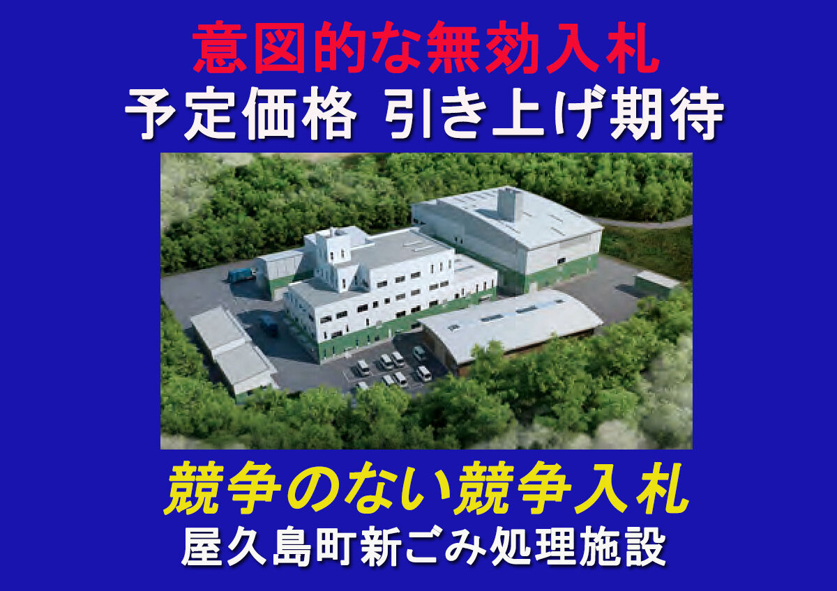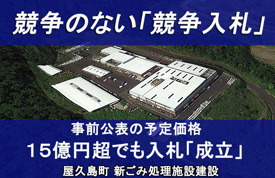 屋久島町の新ごみ処理施設の建設業者を決める一般競争入札で、落札する意思がない川崎技研(本社・福岡市)が入札への参加を辞退せず、事前公表された予定価格を約15億円上回る無効な入札をした問題――。