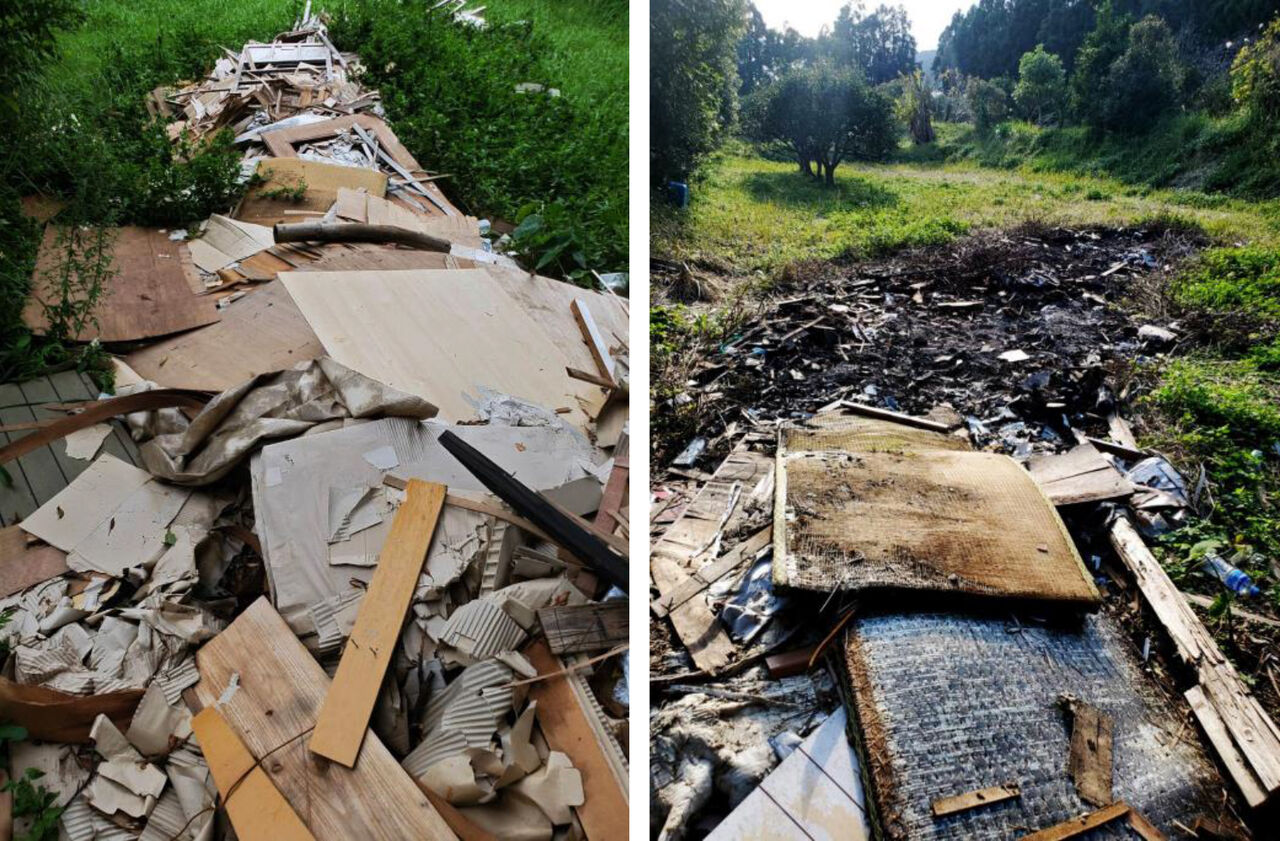 【左】岩山鶴美町議が投棄した廃棄物(2020年9月14日、町民提供)