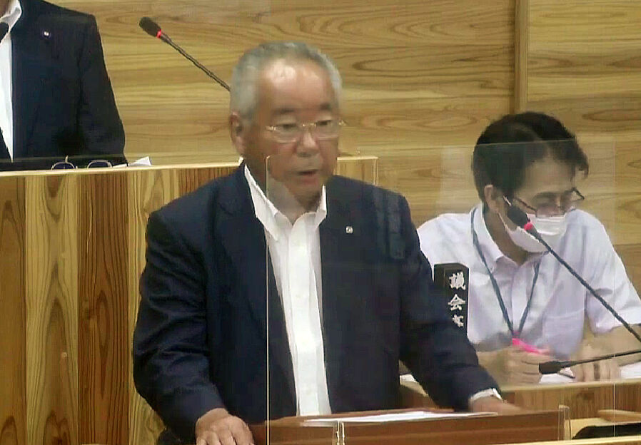 森山裕衆院議員への贈答について答弁する屋久島町の荒木耕治町長(2022年9月13日、屋久島町議会、同町議会YouTubeチャンネルより)