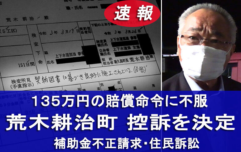 控訴を決めたことについて、荒木町長は町総務課を通じて「まだ控訴理由書を提出していないため、コメントは差し控える」としている。
