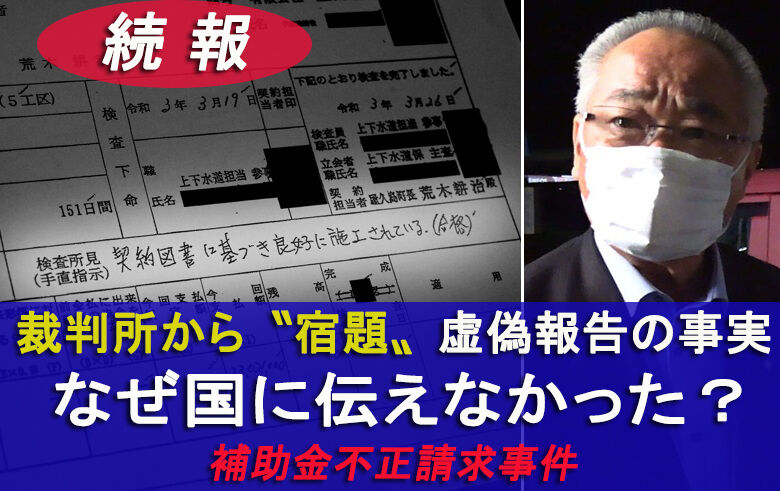 そんな「不正の張本人」がした説明を鵜呑みにして、虚偽報告の事実を国に伝えなかったのは、誰がどうみても、荒木町長ら町幹部の判断が間違っていたのは明らかだ。さらには、職員が説明した内容も事実とは大きく違い、最も工事が遅れていた工区では、国に虚偽報告をした時点で全体の約15%しか工事が完成していなかった。そんな嘘にまみれた説明を信じて、工事関係者への聴き取りや調査を一切せずに放置したとなれば、その責任が荒木町長らにあるのは当然のことである。