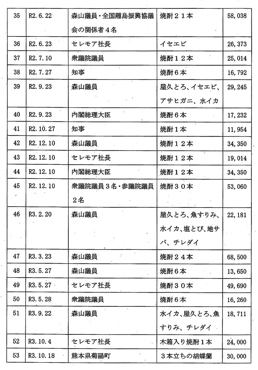 知人社長への贈答38万円「社長を私的に優遇する趣旨」との疑念も