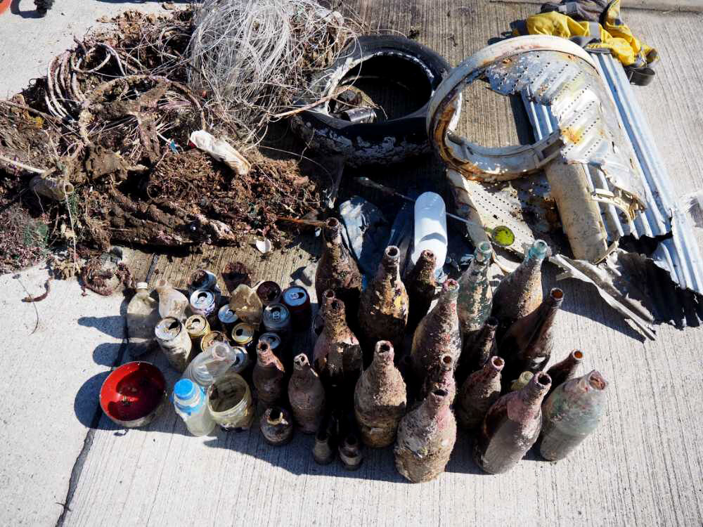 海底清掃で回収されたごみの写真。屋久島町の委託業務として、業者が配信したウェブサイト記事に掲載されている(ocean+α「ふるさと納税で屋久島の海をきれいに! ダイバーたちが世界遺産の海を次世代に繋ぐ」より)