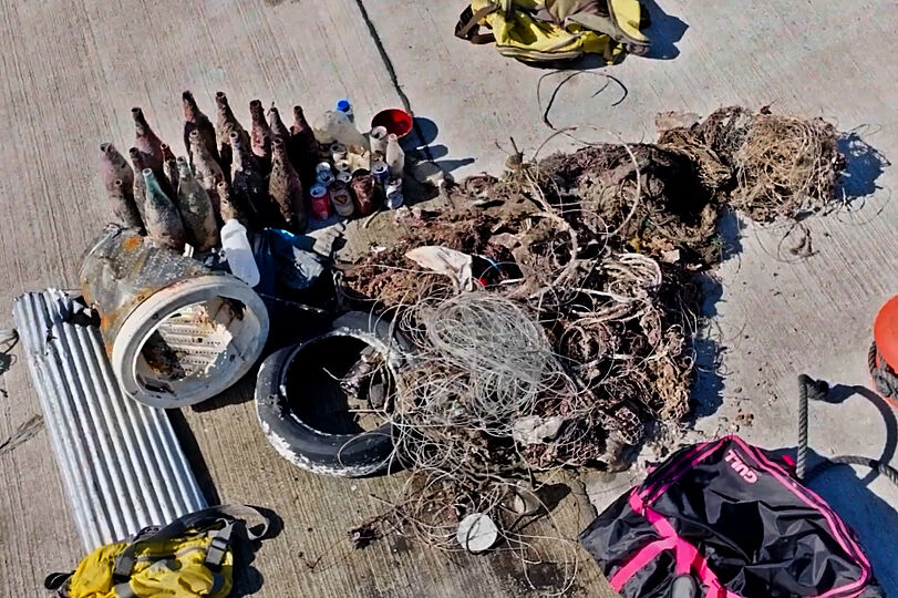 屋久島町が続ける環境保全事業で回収された海底ごみ。町は町議会での報告で、2022年11月24日は1日で5000キロ相当のごみを回収し、産業廃棄物として処分したとしている