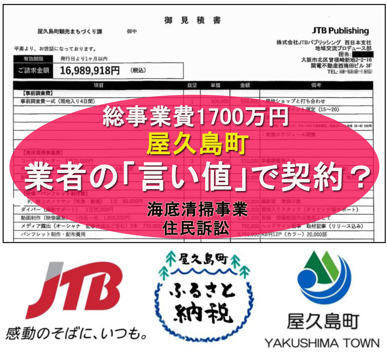 ふるさと納税で「屋久島の自然を守って欲しい」と寄付された1700万円を活用して、屋久島町が2022年度に実施した海底清掃を主体とする環境保全事業で、総事業費の大半が海底清掃そのものではなく、屋久島の観光情報などを伝える冊子や動画の制作費に支出された問題――。