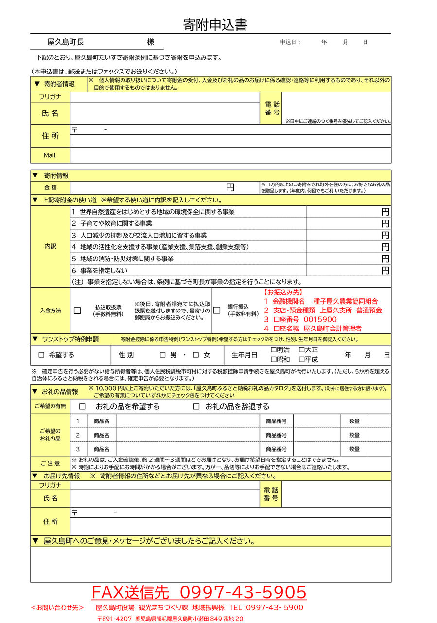 寄附申込書