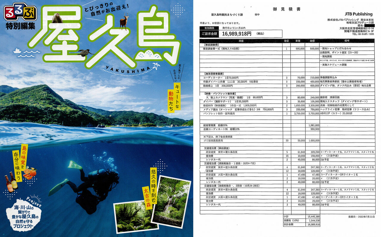 【検証】JTB「るるぶ特別編集 屋久島」制作は環境保全事業なのか? 屋久島町・海底清掃事業