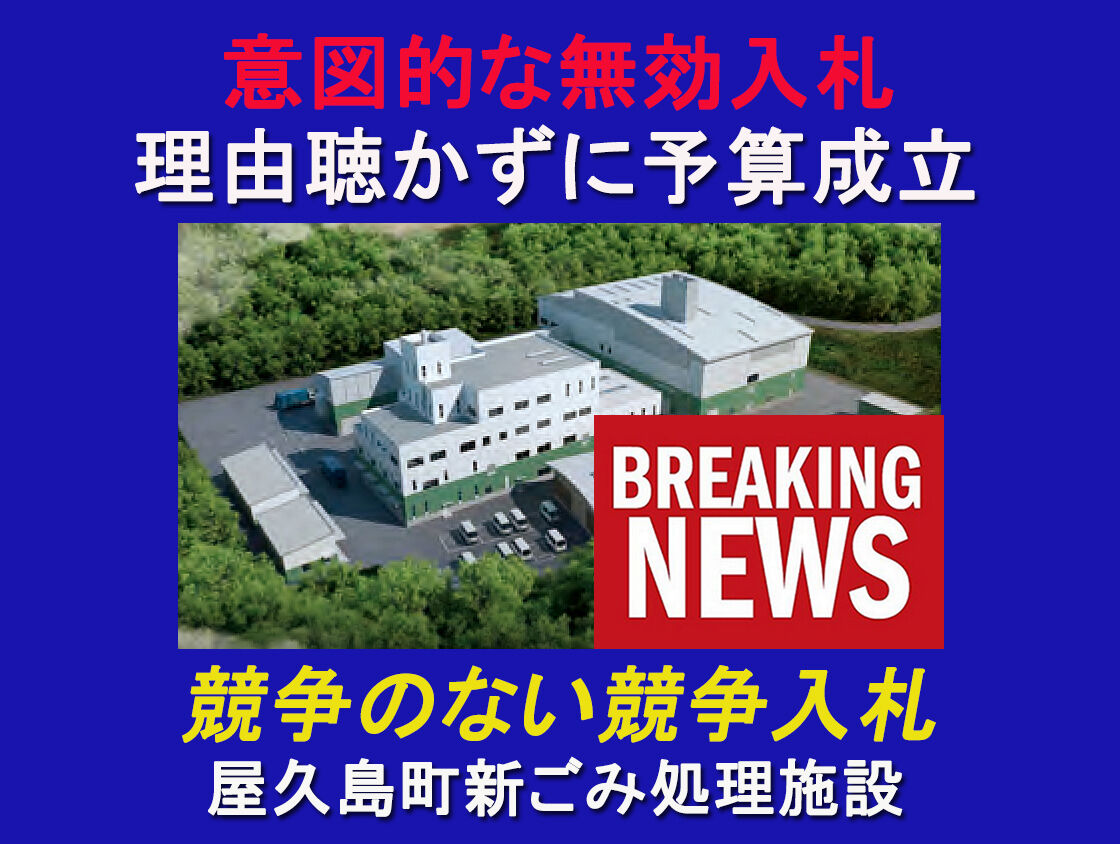 【速報】意図的な無効入札 理由聴かずに建設費予算が成立 屋久島町新ごみ処理施設建設