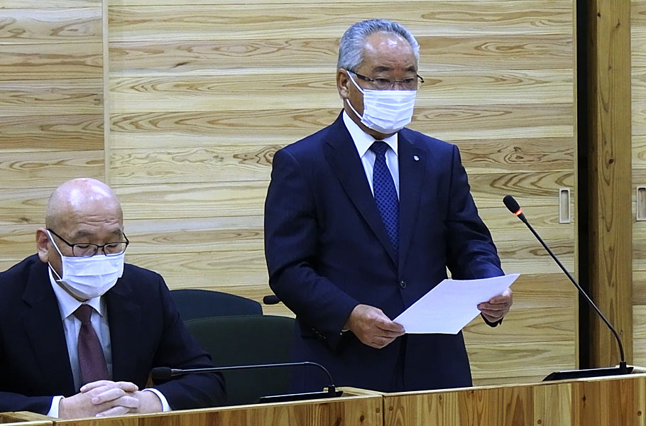 定例会に先立つ11月26日の全員協議会では、町長の荒木耕治ら町幹部が虚偽報告の事実を知ったのちも国と県に報告せず、11カ月間にわたって問題を放置していたことが判明。さらに、すべての工事が終わったのが9月だったにもかかわらず、それより4カ月前に工事代金を業者へ「前払い」していたこともわかり、複数の違法行為が疑われる事態となった。
