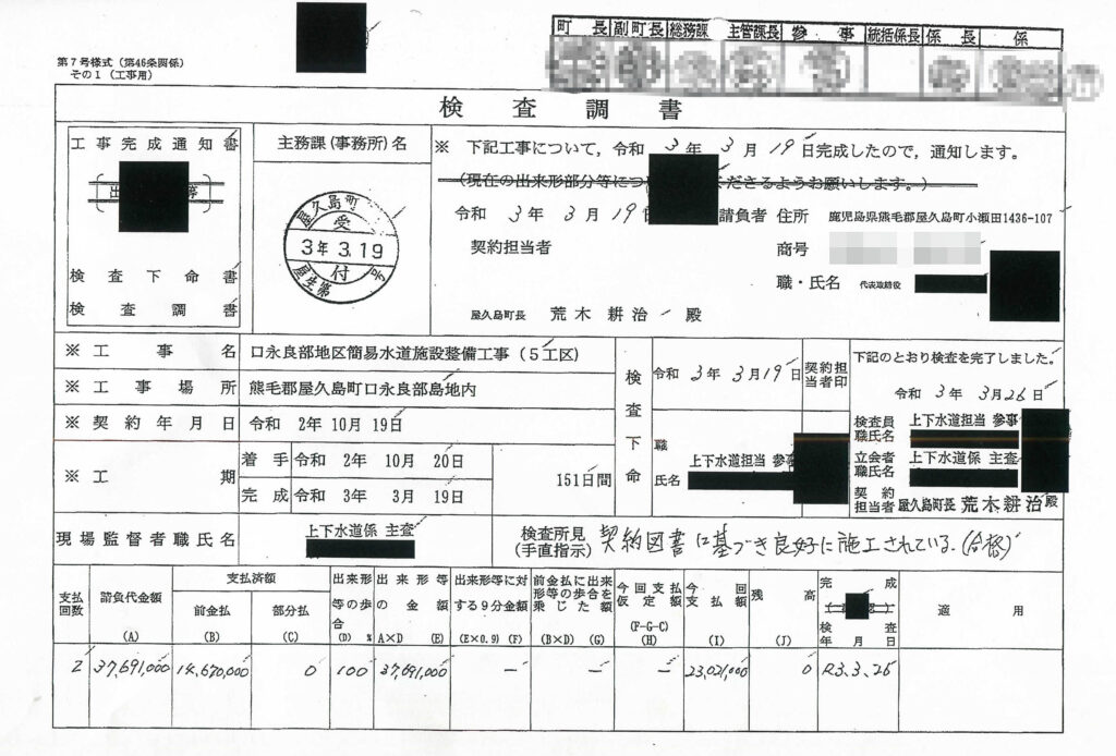 それに対し、工事を請け負った業者は屋久島ポストの取材に、「担当職員には工事が終わっていないことを伝えたのに、予算を繰り越さないで、すべての工事が終わったとする虚偽報告を国に出したのだから、すべては町の責任だ」と訴えた。
