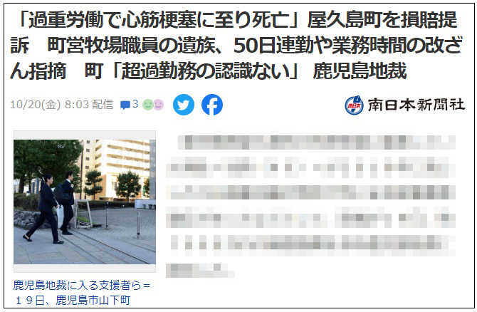 この決定を受けて、屋久島ポストは第一報を配信。続いて地元紙の南日本新聞も報じたことで、職員の公務災害は町内で広く知られるようになった。