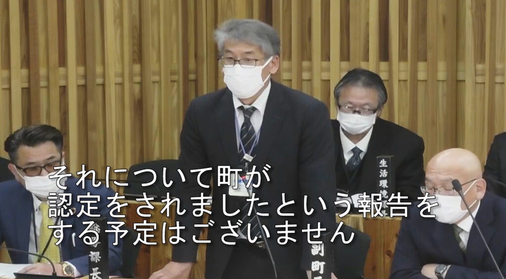 それに対し、一部の町議が事実関係の説明を求めたが、総務課長の岩川茂隆(現副町長)は「その原因が(地方公務員災害補償基金から)詳細に示されていない」として、町から公に報告する予定はないと説明。その後も同支部に対し、町から公務災害の認定理由書の送付を求めることはなかった。