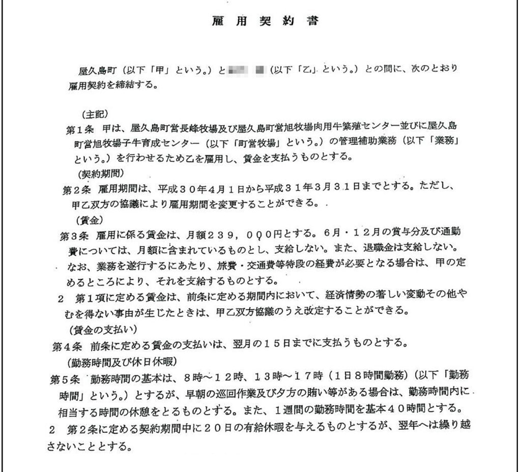 それにもかかわらず、屋久島町が職員と結んだ雇用契約の内容は、実際の労働実態とは大きくかけ離れていた。