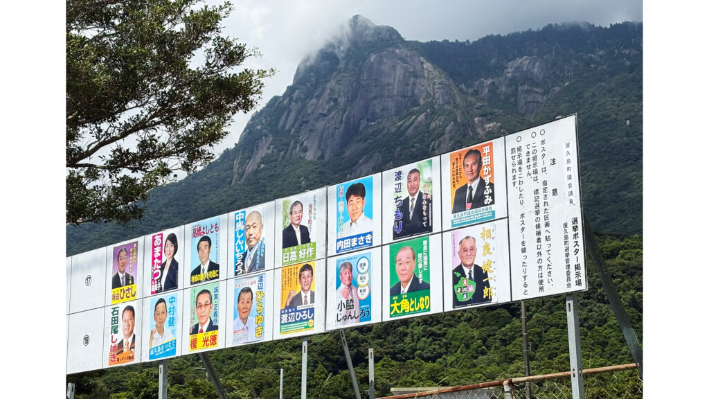 屋久島町議選が9月16日に告示され、深い緑に包まれた島の静寂を破るかのように、立候補した16人の選挙カーが町内を走りまわっています。