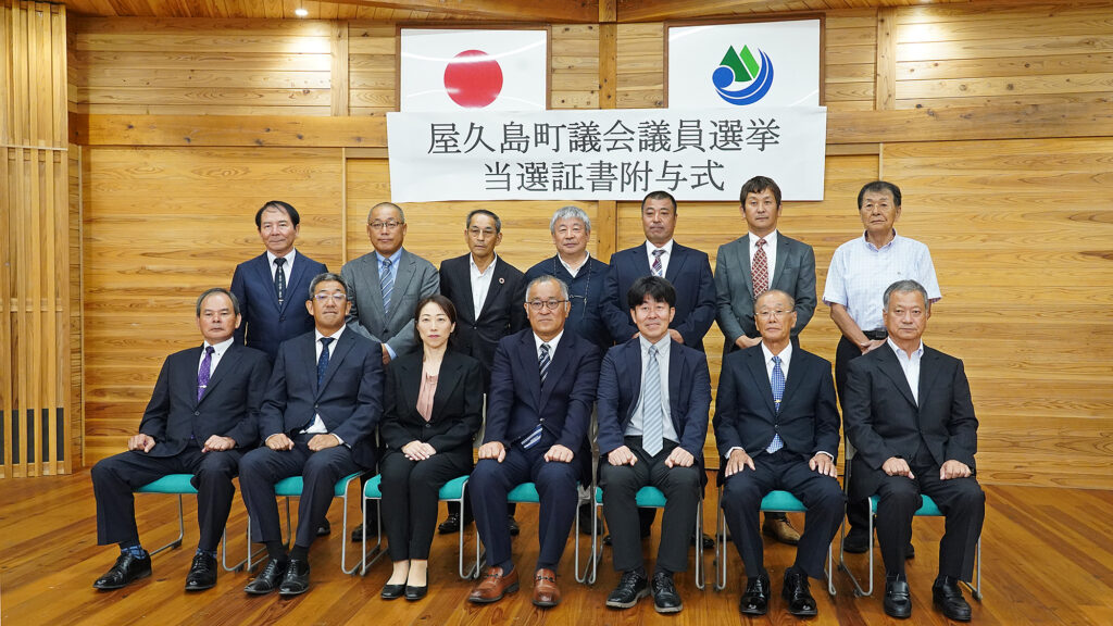 屋久島町選挙管理委員会は9月22日、前日に投開票された町議選を受けて「当選証書附与式」を開き、当選した14人に当選証書を手渡した。