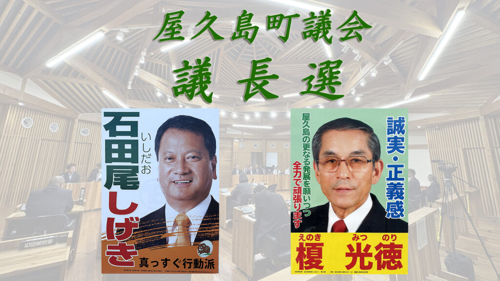 10月1日に開かれる屋久島町議会の臨時会で実施される議長選に、前議長の石田尾茂樹氏と前総務文教常任委員長の榎光徳氏の2人が立候補することが9月30日、町議会事務局への取材でわかった。同日までに他の町議から立候補の申し出がないため、2人が一騎打ちで議長の座を争うことになった。