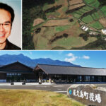 【上左】屋久島町営牧場で公務中に亡くなった田代健さん=遺族提供【上右】職員が過重労働で死亡した町営長峰牧場の衛星写真=Google Earthより【下】屋久島町役場=屋久島ポスト撮影
