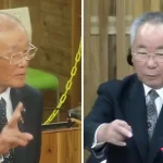 【左】屋久島町議会12月定例会で一般質問をする大角利成町議【右】答弁する荒木耕治町長=いずれも2025年12月11日、屋久島町議会YouTubeチャンネルより