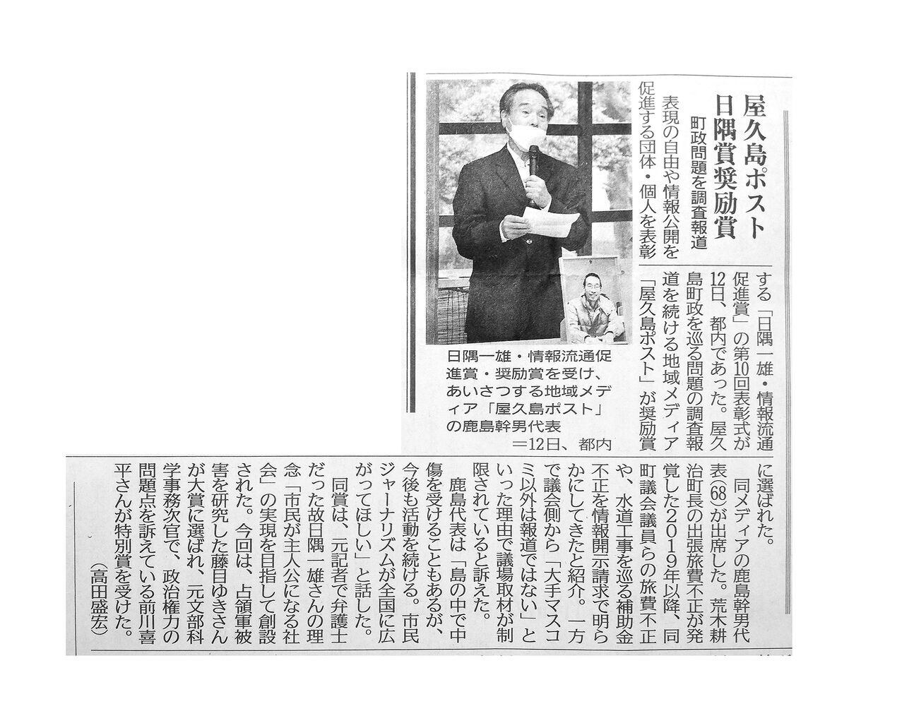 屋久島町議会(石田尾茂樹議長)が屋久島ポストの議会取材を拒否した問題をめぐる国家賠償請求訴訟も、2月の期日に予定される屋久島ポスト側の反論を踏まえ、判決に向けて審理が進む見込みです。