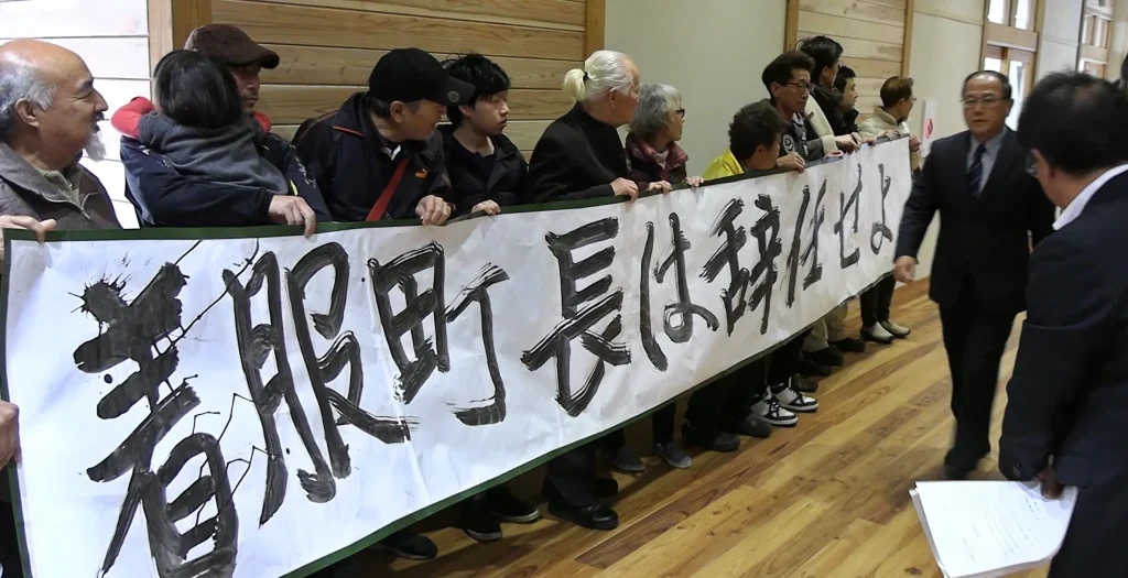 町長の嘘に怒る住民たち