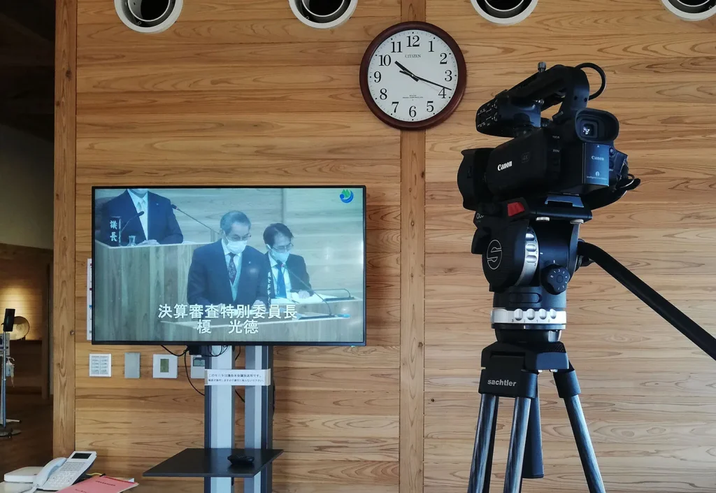 ところで、屋久島ポストは石田尾議長に取材を拒否されたため、この定例会の様子を議場で取材できなかった。そこで、議場から排除された私は、役場内の公共スペースに設置された議会中継用のモニター画面をビデオで撮影して、急場をしのがざるを得なかった。