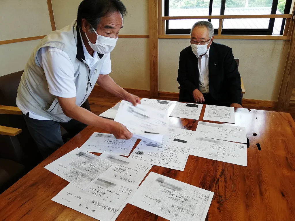 鹿島さんと私は町長室を訪ね、荒木町長の見解を聴くことにした。町長応接室に通された私たちは、大きく印刷した15枚の虚偽領収書をテーブルに並べ、町長に「領収書が発行された経緯を知りたくないですか?」と尋ねてみた。