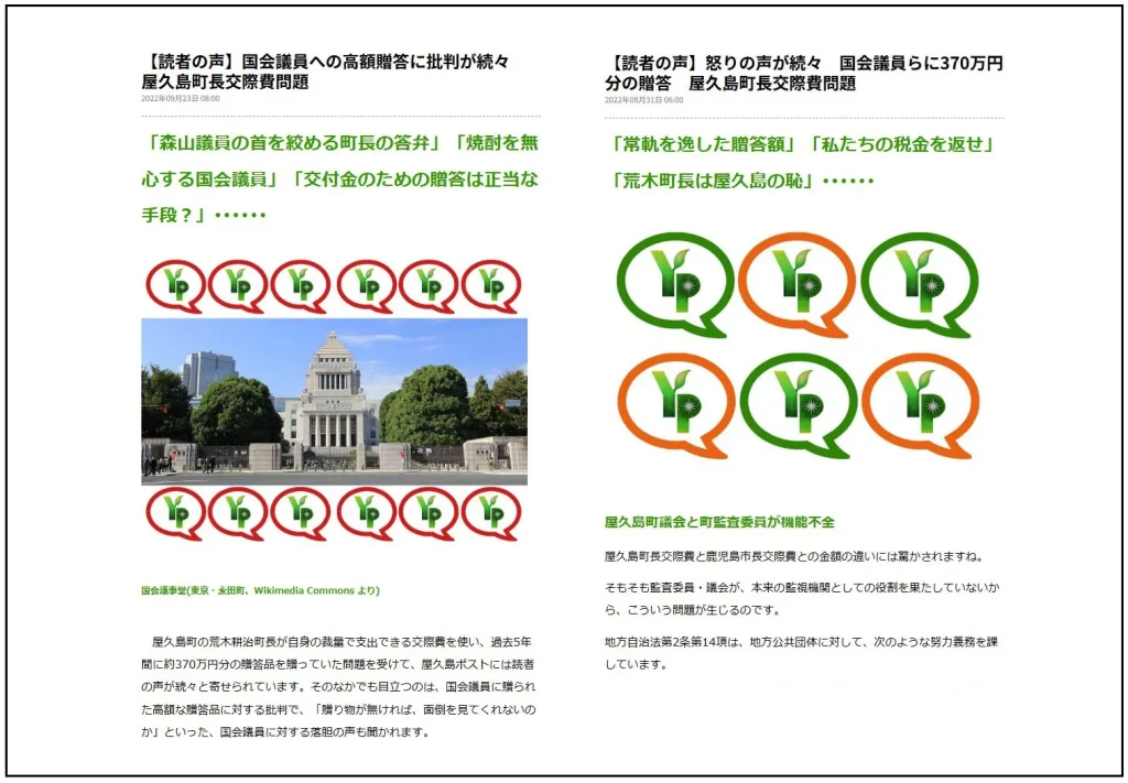 国会議員や県知事らに対する取材の結果を報じると、屋久島ポストのコメント欄には、読者から不満の声が続々と届いた。