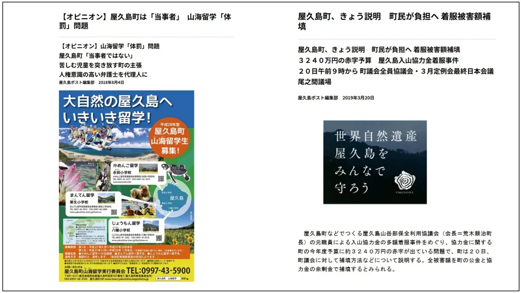 屋久島ポストに対してだけでなく、屋久島町の役場と議会は自分たちに不都合な情報を伝える報道に圧力をかけてきた。