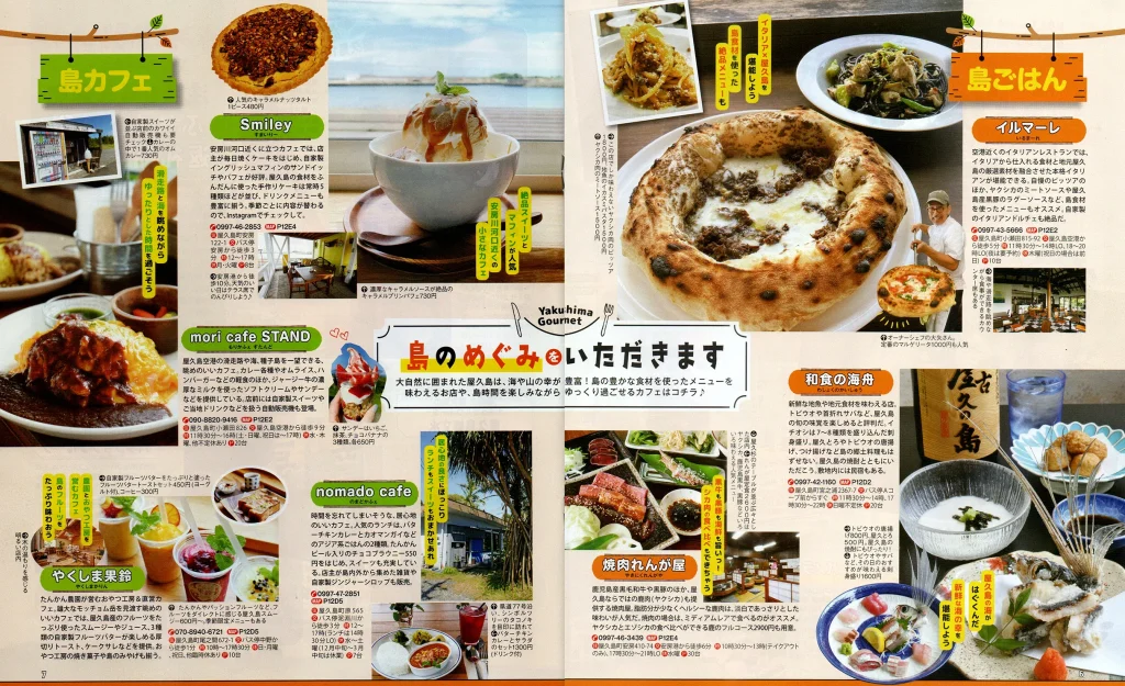 屋久島町が海底清掃事業で制作した観光ガイド冊子のグルメ情報ページ
