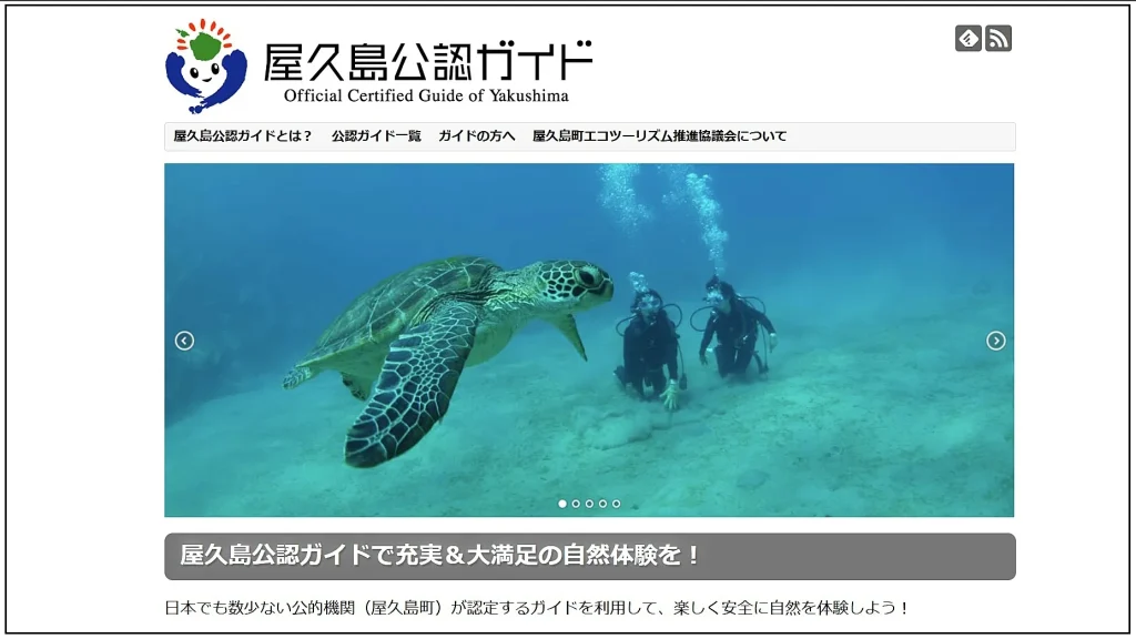屋久島公認ガイドについて紹介するウェブサイト画面