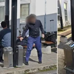 防煙壁や喫煙所の表示なく タクシー乗り場のベンチ前に灰皿設置