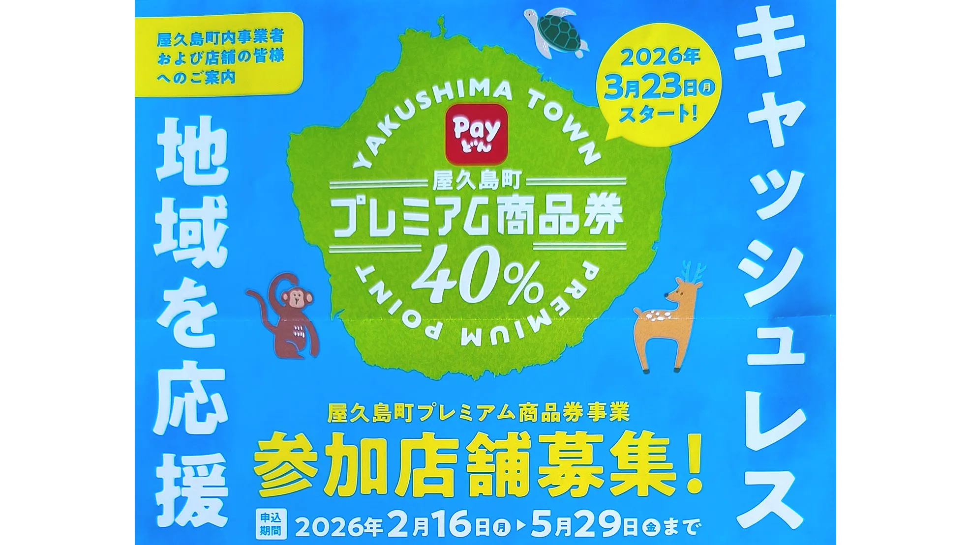 「Payどん」ポイント、議会の承認を受けずに1万円あたり4000円への増額を決定 2026.02.20 屋久島町政 y@kushima-post-administrator@ 屋久島ポスト – The Yakushima Post